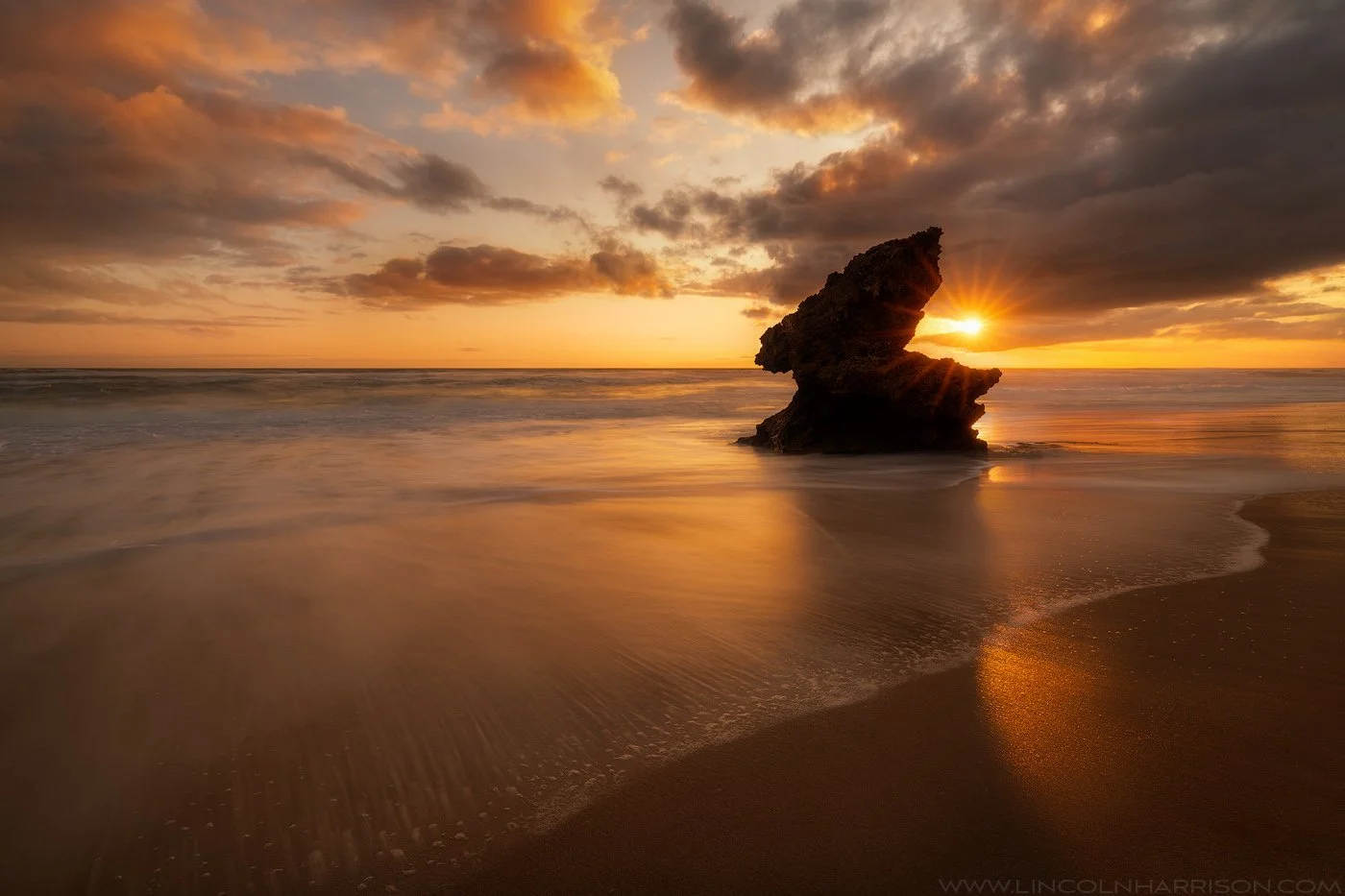 Golden sunset behind Lizard Head Rock, Rye VIC.